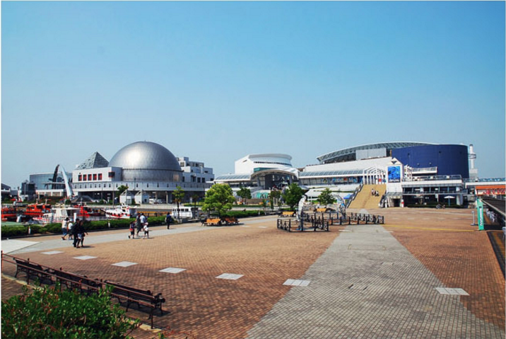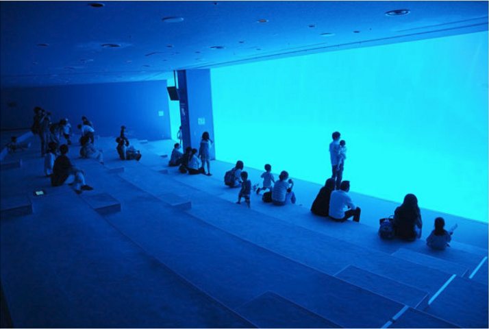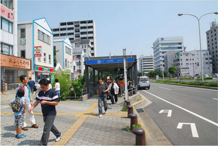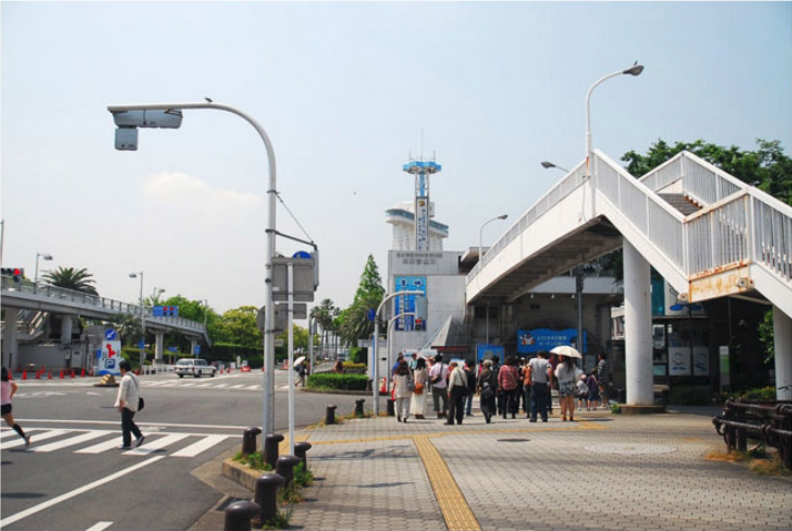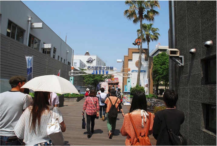 從3號出口出來後, 會看到往水族館的許多旅客。
